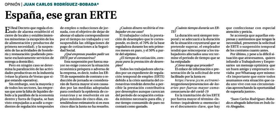 ARTÍCULO DE OPINIÓN DE JUAN CARLOS RODRÍGUEZ-BOBADA, ABOGADO DE INDO IURIS